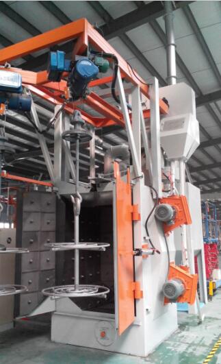 吊鉤式拋丸清理機具有拋丸量大,拋丸清理效率高,室內工作空間大,結構緊湊,且采用無地坑形式,對清理工件的外形結構無特殊要求,可一機多用,該系列產品廣泛應用于拋丸機械制造業及鑄造業。