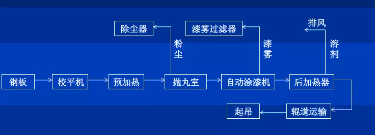 預(yù)熱是為了拋丸前將鋼板升溫,除去表面水分、部分油污,使鋼板升溫達(dá)到噴漆后的干燥。